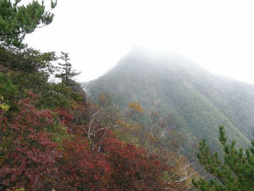 金ヶ岳に向かう途中で茅ヶ岳の山頂を振り返りました。