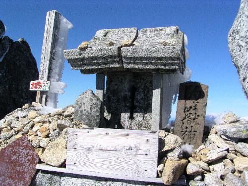次は中岳です。御岳神社の後に木曽の御岳が見えます