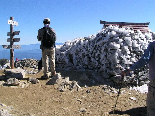 いよいよ木曽駒ヶ岳の山頂に到着です。伊那、木曽の両側から登ってくるために二つの神社があり、こちらは伊那側のものです。