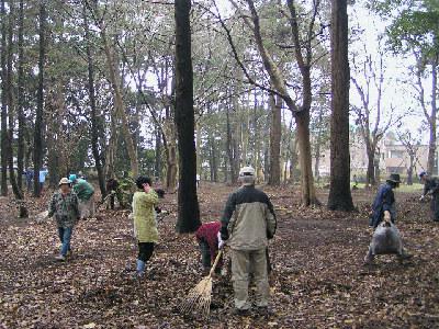 今年になって始めて野草の撮影ポイントである市民の森(諏訪神社)に行ったら近所の老人会の方、50名程度で落ち葉集めをやっていました。月一回ぐらいの頻度で森の手入れをして下さっているのだそうです。