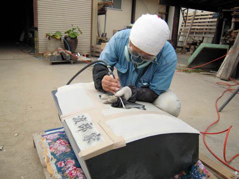 ▼正面の文字は、手彫りで仕上げます。