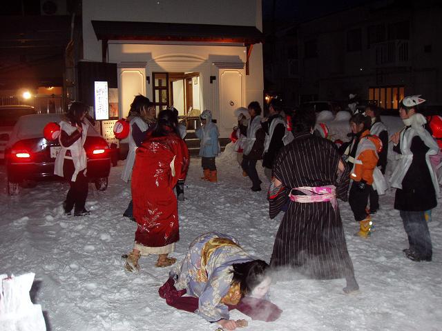 2006年2月4日山形市七日町一番街商店街の蔵の前にて作谷沢の子供達と芸術工科大学の学生さん(コンテンポラリー)が2月11日開催される芸術祭宣伝のパフオーマンスをさせて頂きました。御協力を頂いた1番街商店街の皆さんありがとうございました。