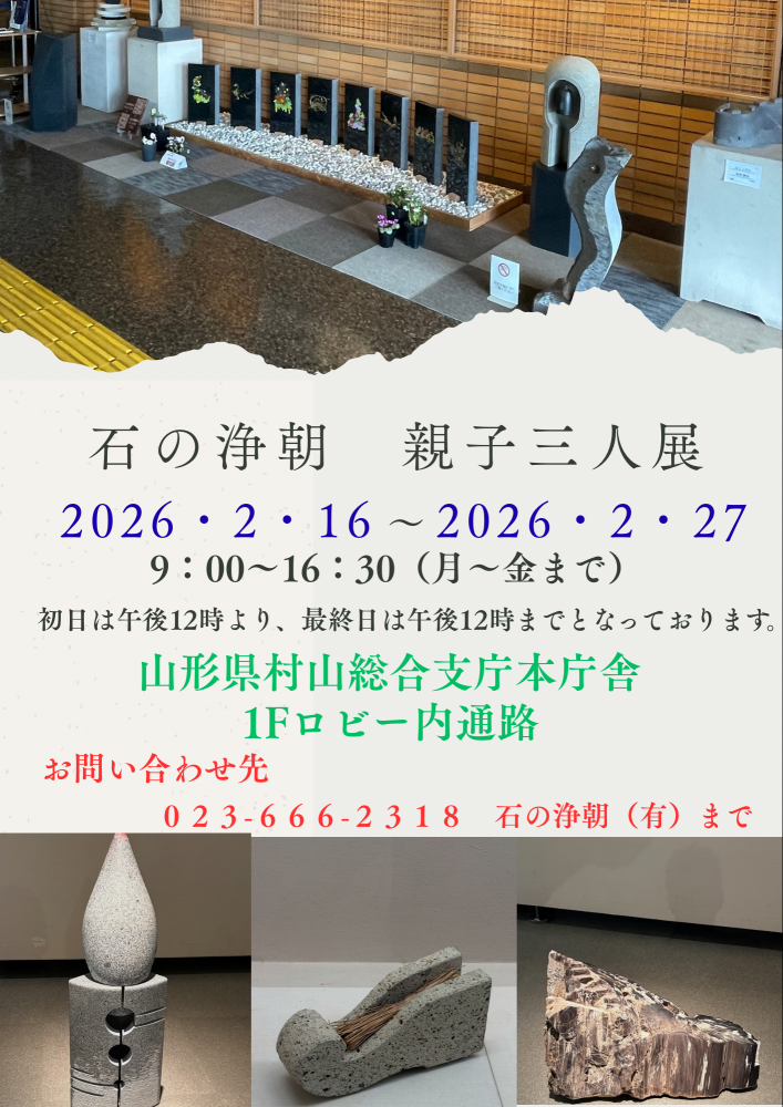 今年度製作の『やすらぎ石室』や県美展出品作品、浄音塔など職人が1つ1つ加工を施した作品を展示させていただきますので是非ご覧になってください!!