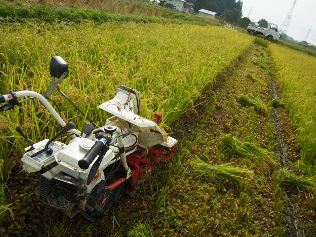 隣の隣の田んぼではピカピカのコンバインがガガッと走り回り、サクサクッとあっという間に稲刈りを終えていってしまった。