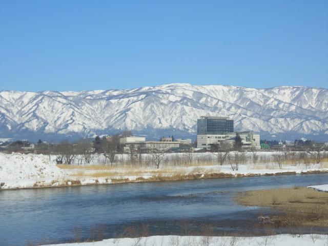 車道には全く雪がなくなりましたが、山や河川敷、田畑はまだ白い。