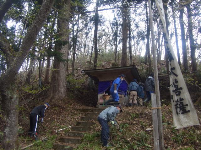 世帯の代表が集まって、掃除をし、草を刈り、旗を揚げるのである。