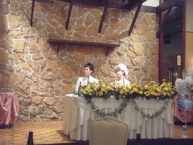 若旦那、若女将、コージョーチョーとともに「新郎上司」席に陣取る。