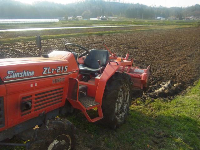 肥やし撒いて耕運機かけて定植前の畑こやい。