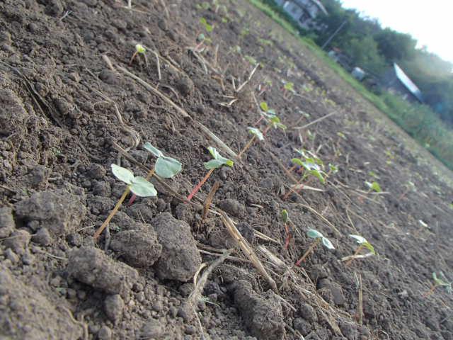 ソバの種蒔き後、ハトがものすごい勢いで畑にやってきてソバの種子を食いよります。