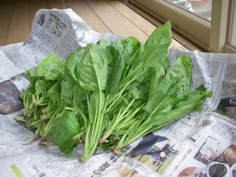 今朝 取れたてのほうれん草をご近所からいただいた