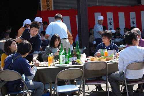 ▼親睦会を兼ねた「さなぶり」で疲れを癒します。