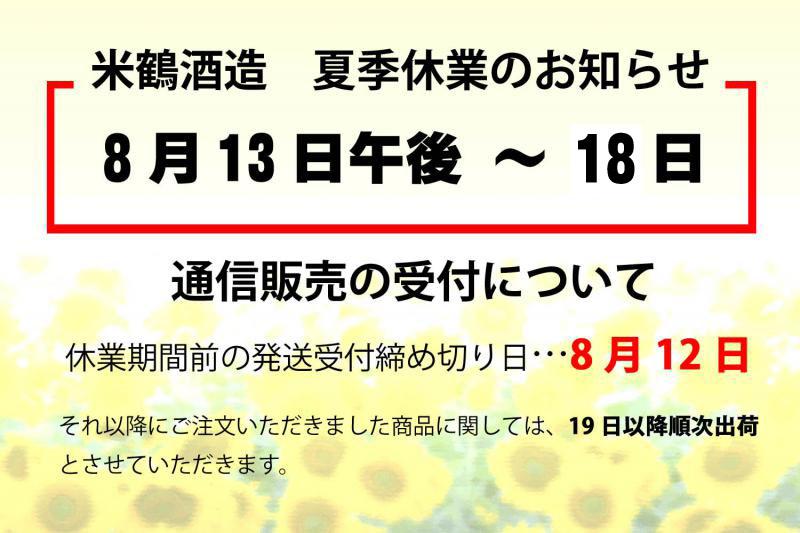 ▼☆米鶴酒造 夏季休業日のお知らせ☆