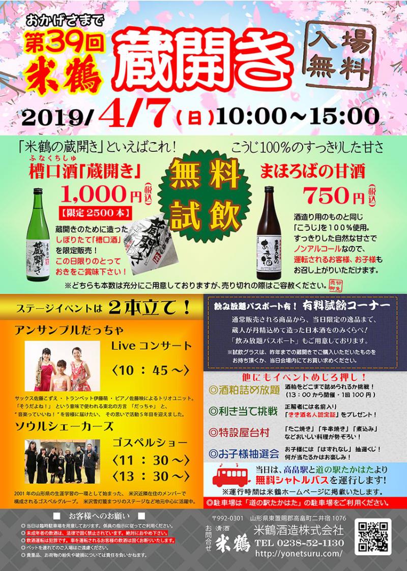 早いもので、米鶴の春の恒例イベント「蔵開き」は、今年で39回目を迎えます。