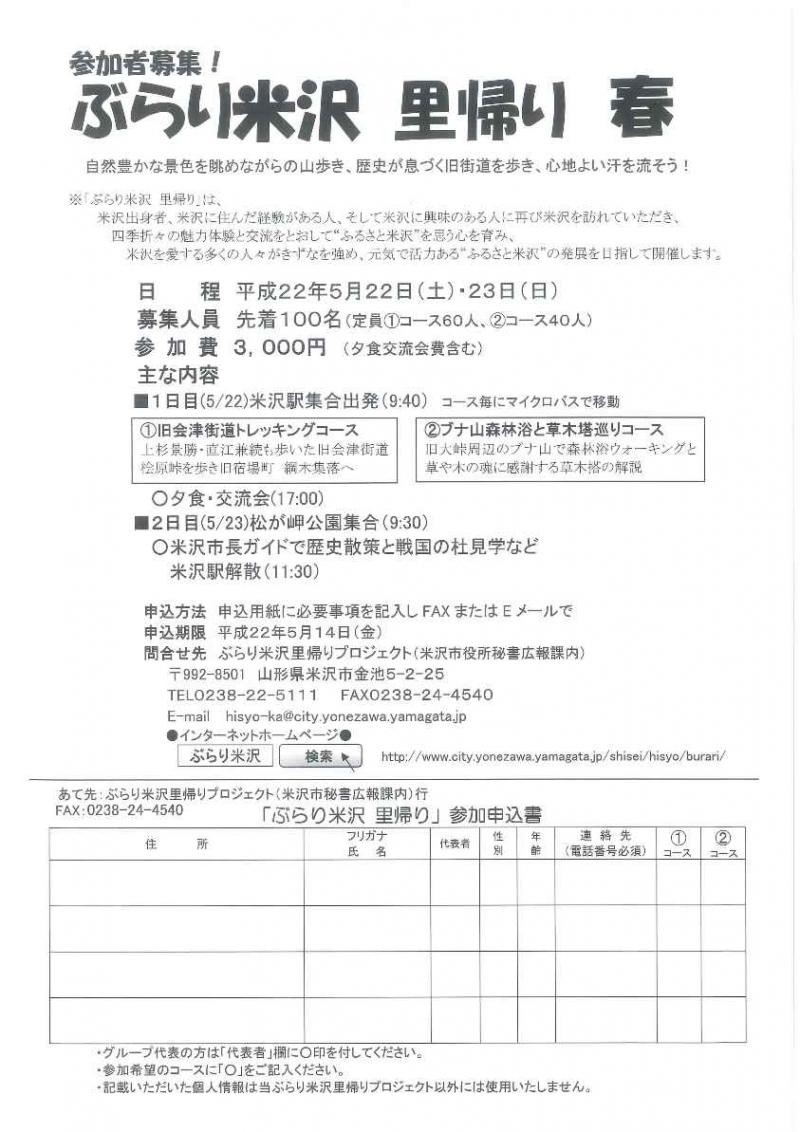 問合せ先 ぶらり米沢里帰りプロジェクト