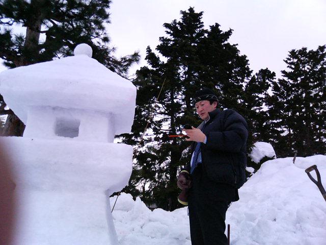 あっという間に完成。バランスも良い、上出来の雪灯篭。