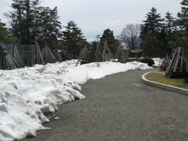 雪囲いを早く取ってもらって、鷹山公の胸像を出してやらないと。