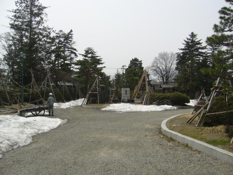 ▼上杉記念館の雪囲いも