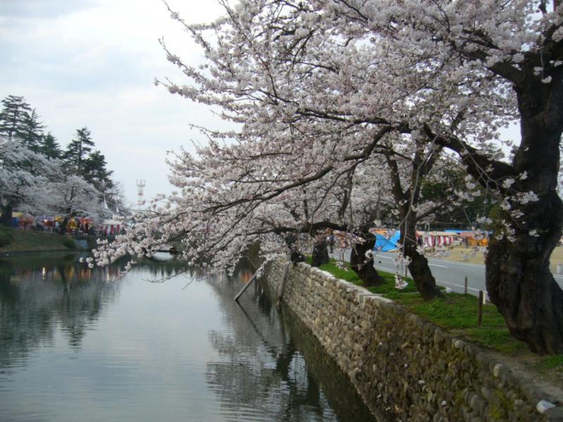 伝国の杜の芝生のところにもたくさんの人が座って桜見物をしています。