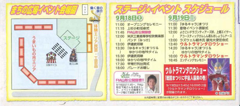 ▼まちの広場イベント会場図、ステージイベントスケジュール