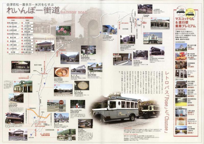 ▼会津・喜多方・米沢を結ぶレトロバスパンフレット 中面です。