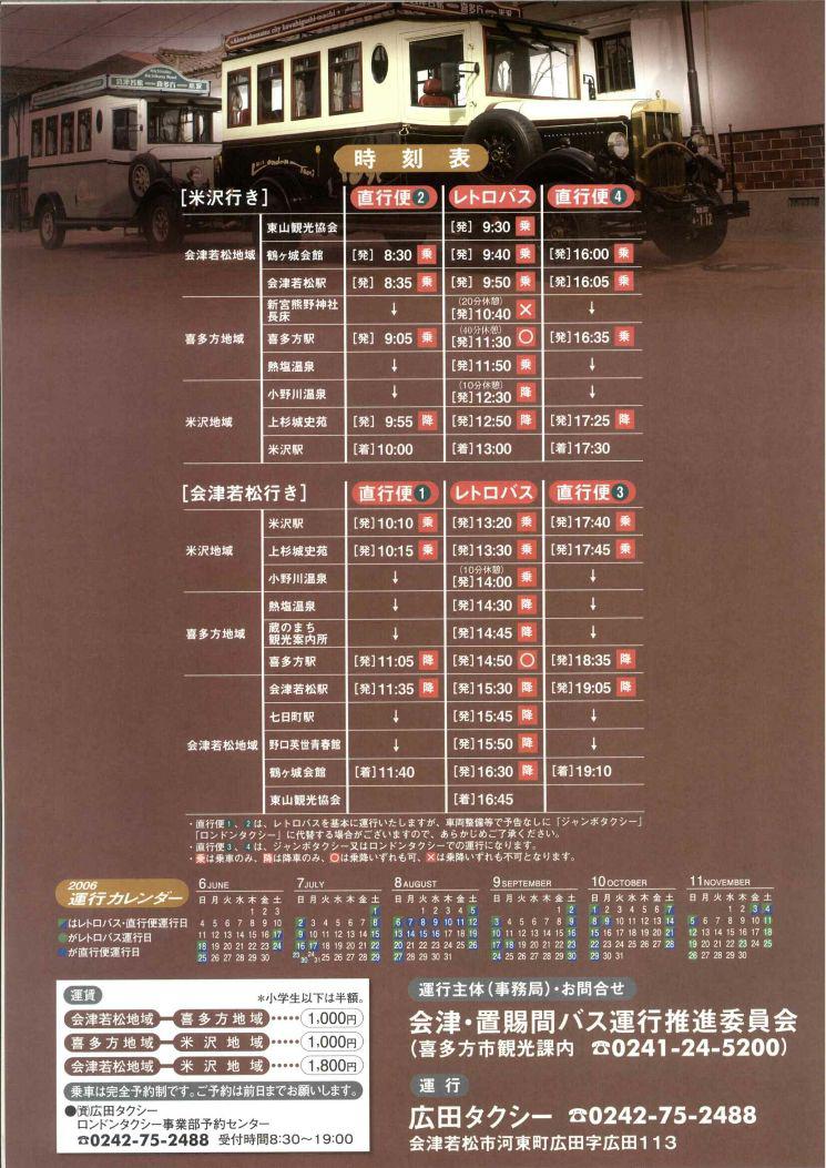 ▼会津・喜多方・米沢を結ぶレトロバスパンフレット裏面