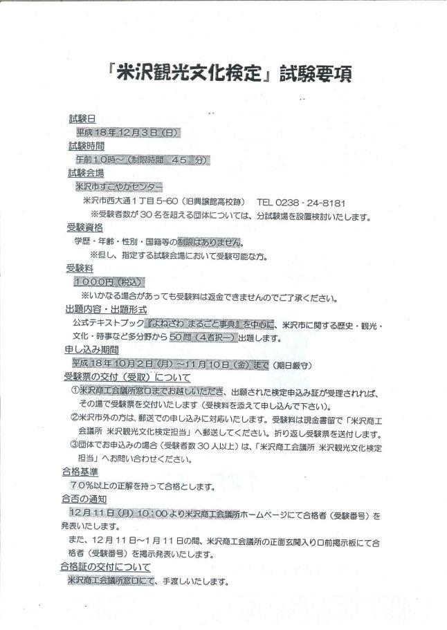 ▼米沢観光文化検定 試験要項