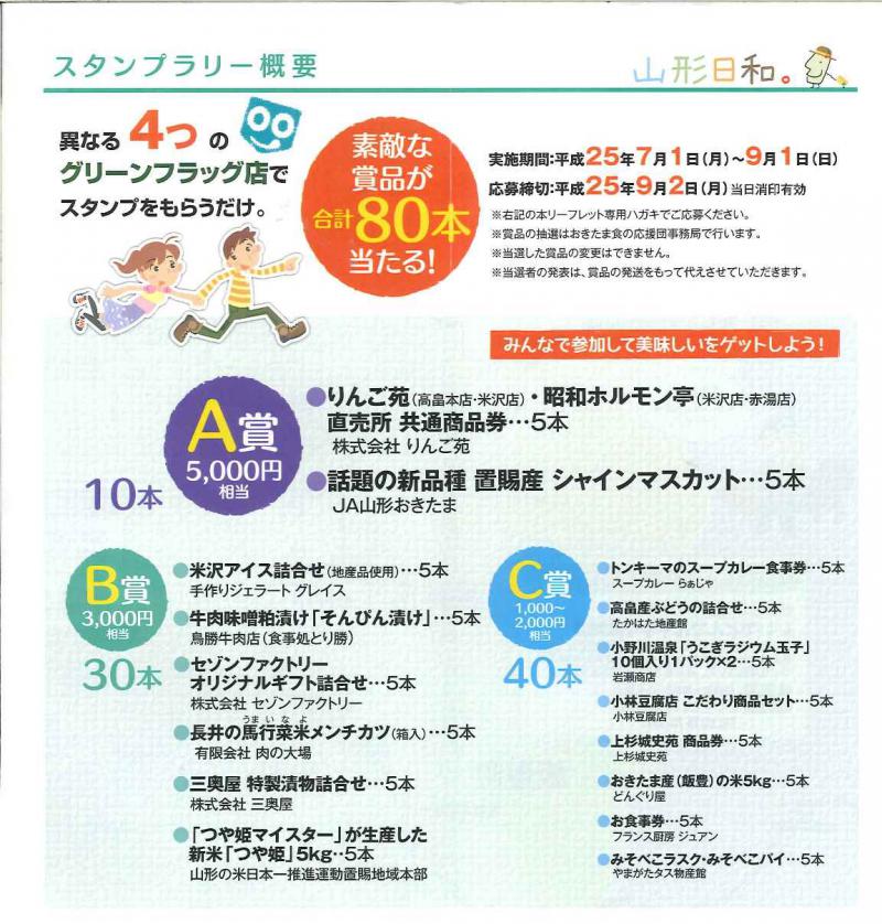 異なる4つのグリーンフラッグ店でスタンプをもらうだけで