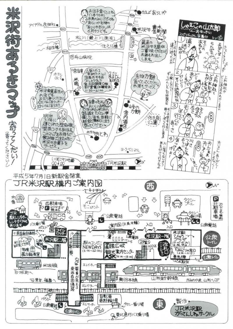 駅の案内図や米沢弁の方言4コママンガも楽しいです。