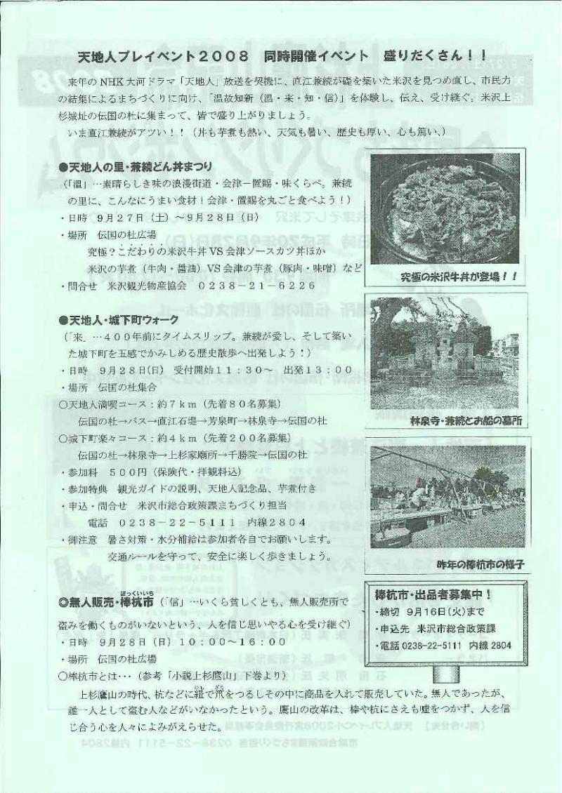 来年のNHK大河ドラマ「天地人」放送を契機に