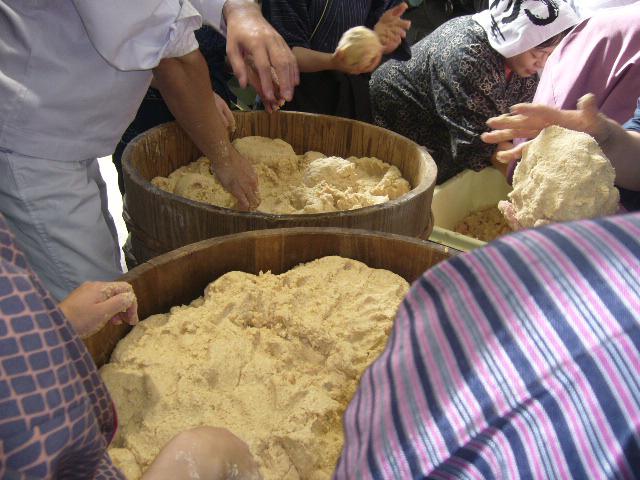 米沢市の小野川温泉でおこなわれる「みそ作り体験」
