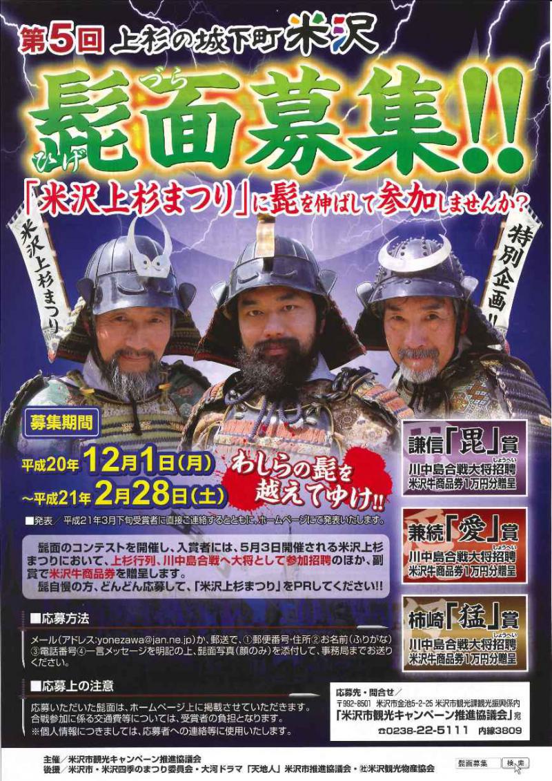 髭自慢の方、どんどん応募して「米沢上杉まつり」をPR