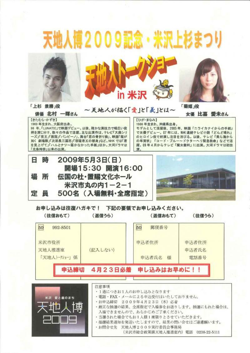 天地人トークショーを開催します。