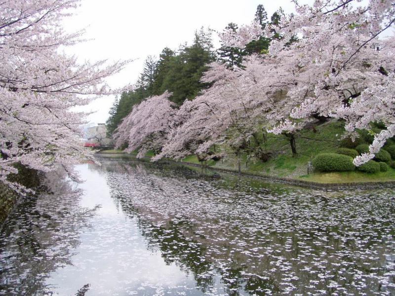 散った花びらがお堀の水面に浮かび綺麗な模様を描き、