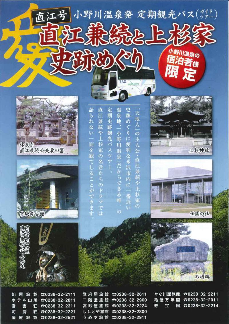 ▼小野川温泉発!定期観光バス 直江兼続と上杉家史跡めぐり