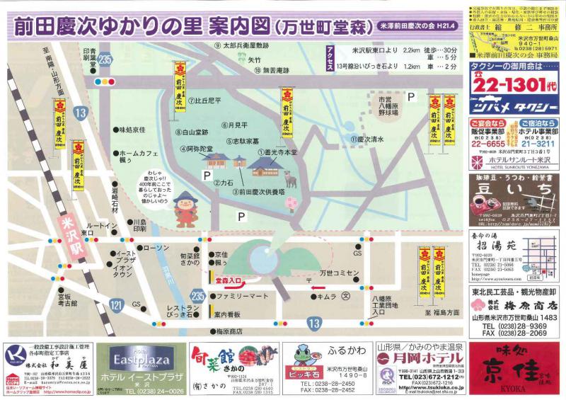 ▼前田慶次ゆかりの里案内図(万世町堂森)