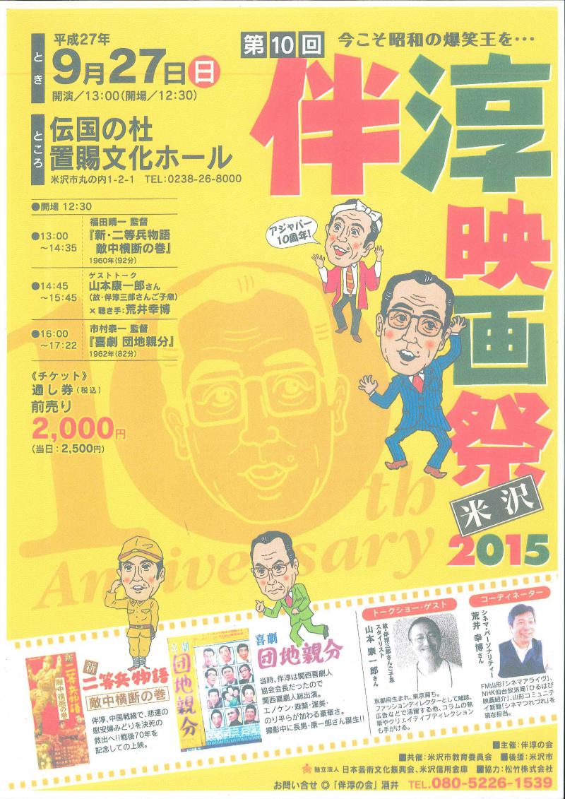 お問合せ 電話080−5226−1539(伴淳の会 酒井)