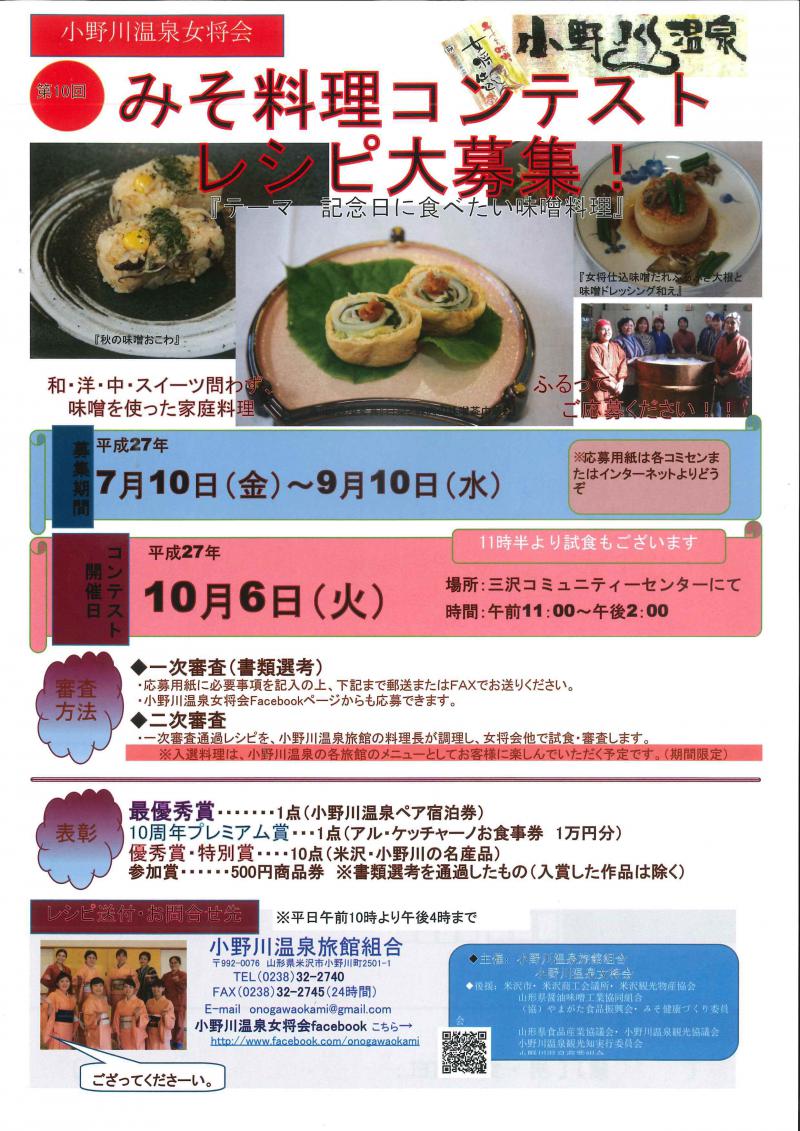 ▼小野川温泉「ごっつおう みそ料理」コンテスト料理レシピ大募集!