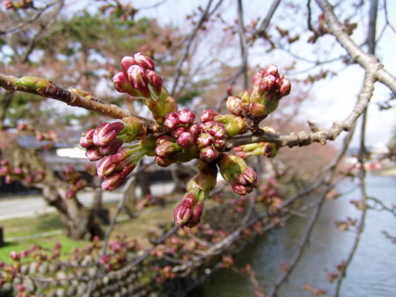 桜の様子は、だいぶ蕾が開いてきていました。