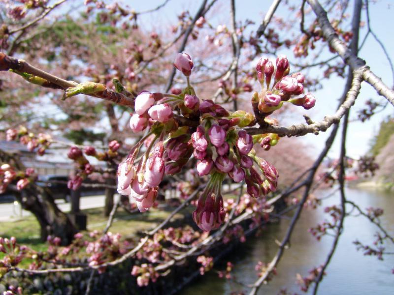 お堀全体が華やいできました。見ごろももう少しといった感じです。
