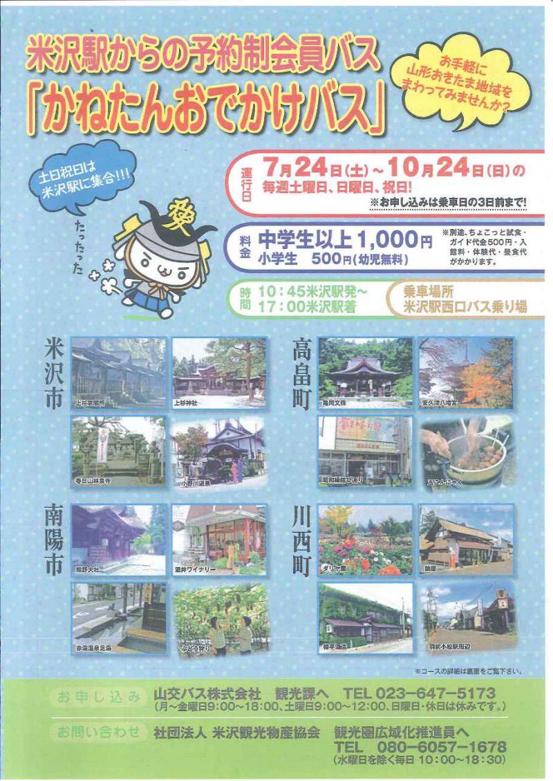 ▼米沢周辺の観光に「かねたんおでかけバス」をご利用下さい!