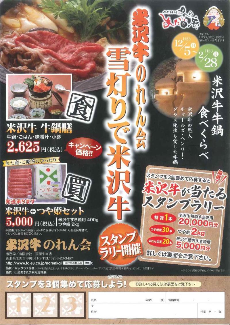 ▼米沢牛のれん会 雪灯りで米沢牛スタンプラリー!