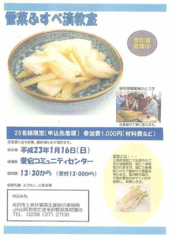 雪菜のふすべ漬教室のご案内です。