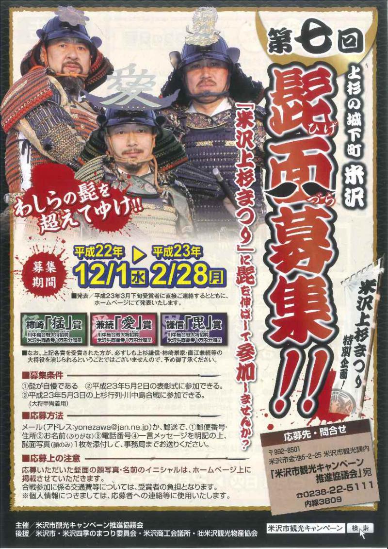 髭自慢の方、どんどん応募して「米沢上杉まつり」をPR