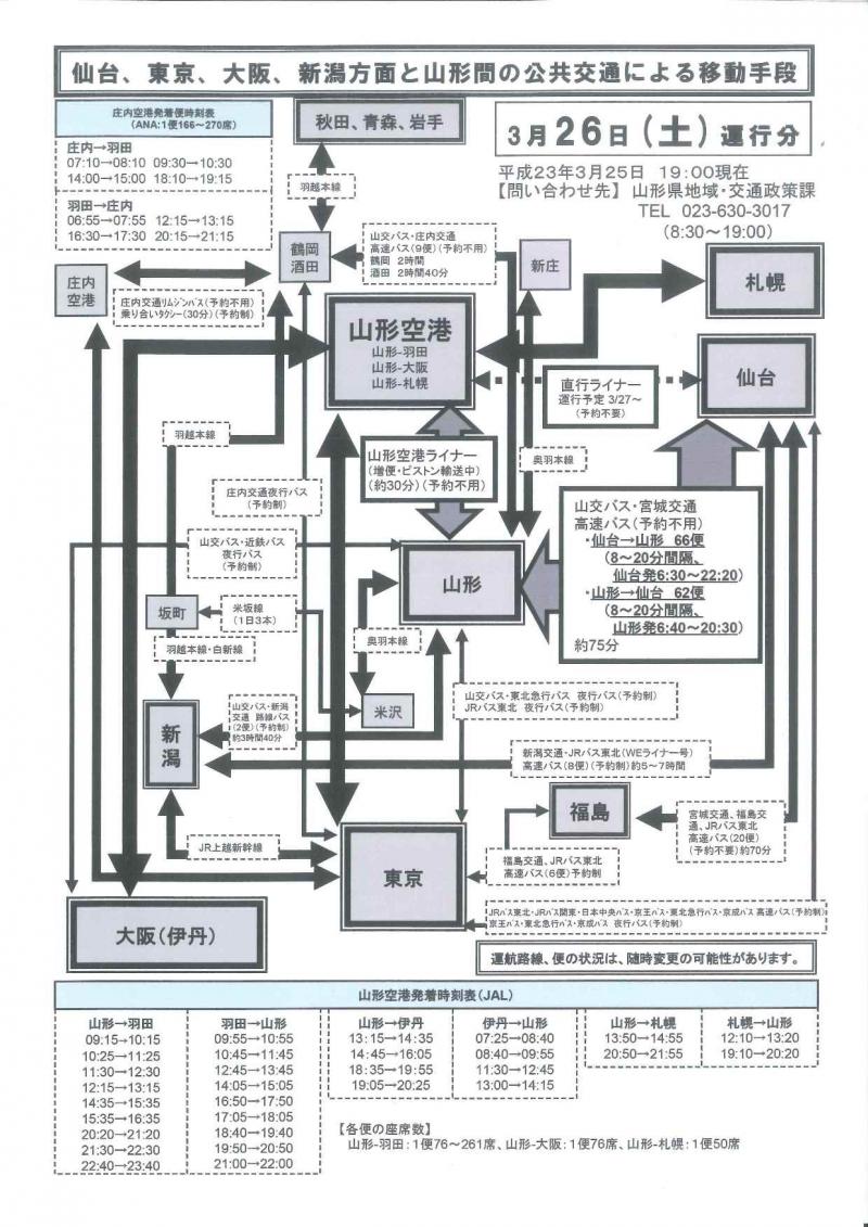 「仙台、東京、大阪、新潟方面と山形間の公共交通による移動手段」