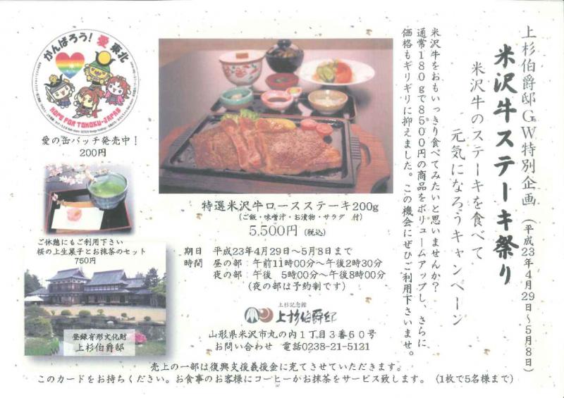▼上杉伯爵邸GW特別企画 米沢牛ステーキ祭り