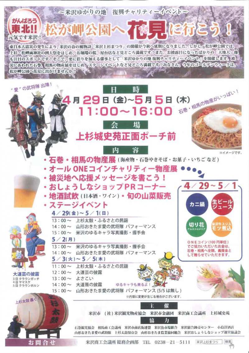 「米沢ゆかりの地 復興チャリティーイベント」を開催します。