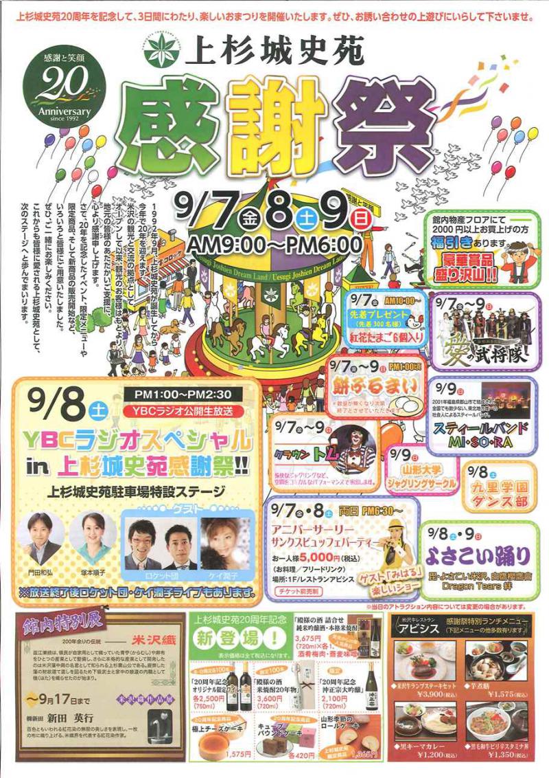 ▼上杉城史苑20周年感謝祭 9月7〜9日開催!
