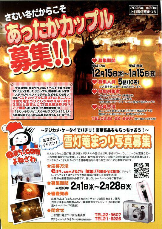 申し込み連絡先:0238-22-9607(雪灯篭まつり事務局)