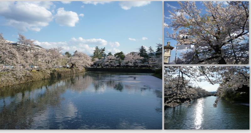 お堀の水面に桜が舞い散りとても風情がございます。
