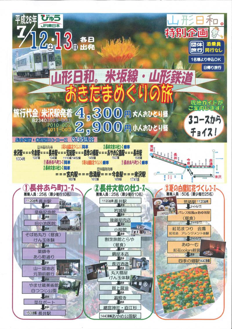 旅行代金 米沢駅発着 大人4,300円 小人2,900円